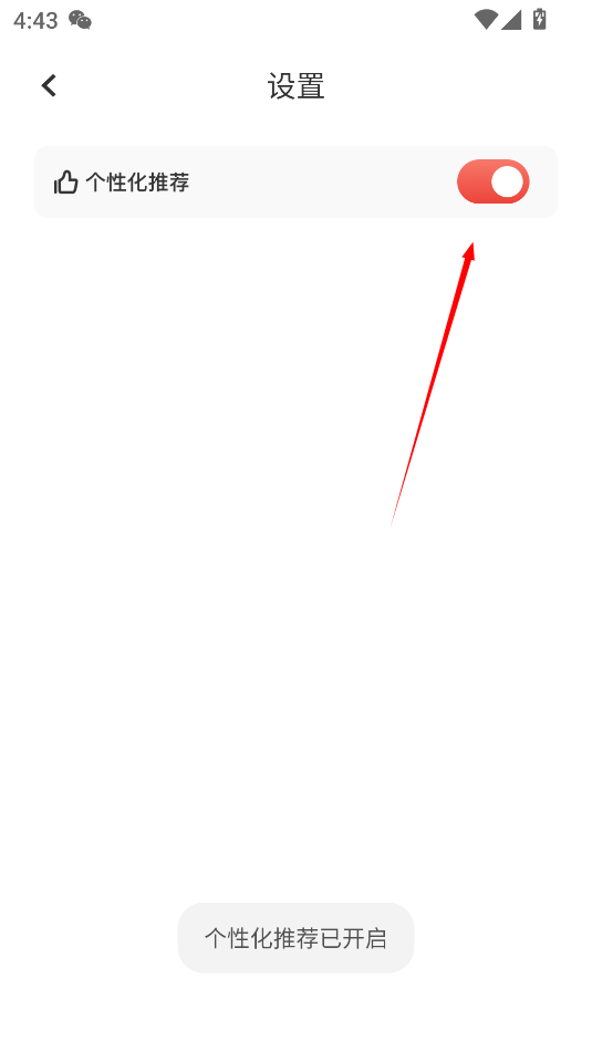 2、然后点击如图所示的按钮开启个性化推荐功能即可